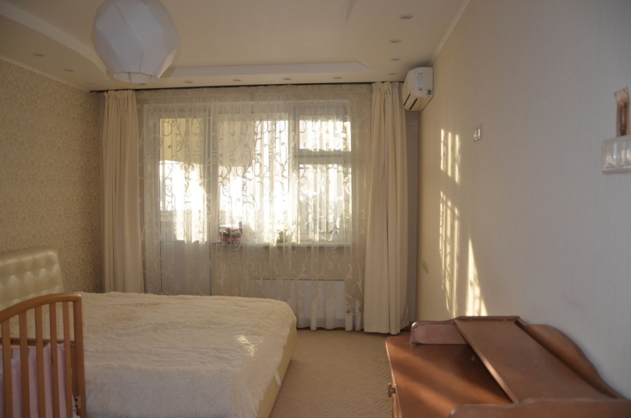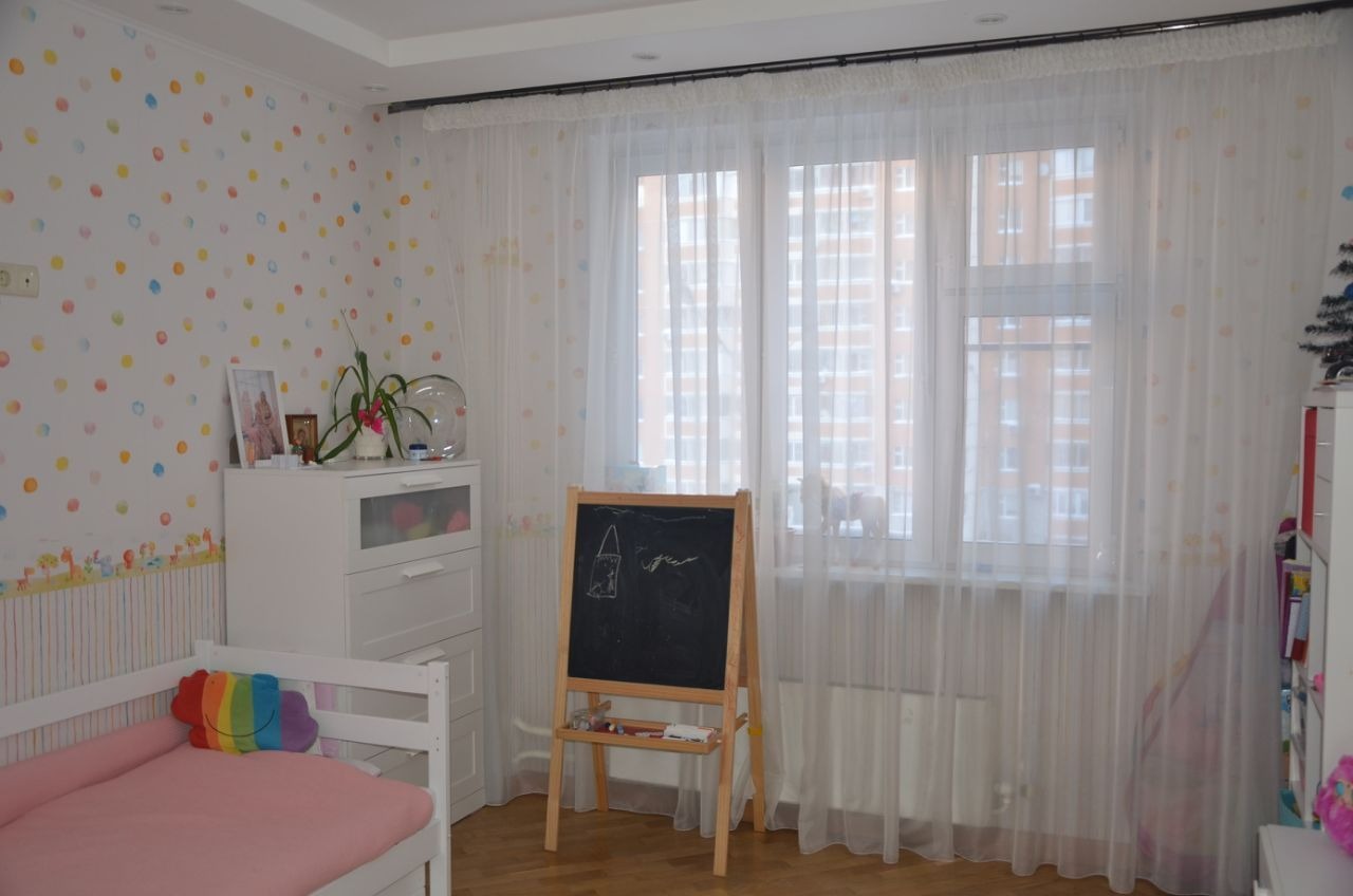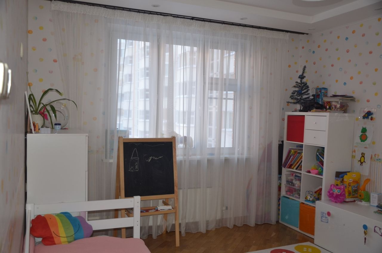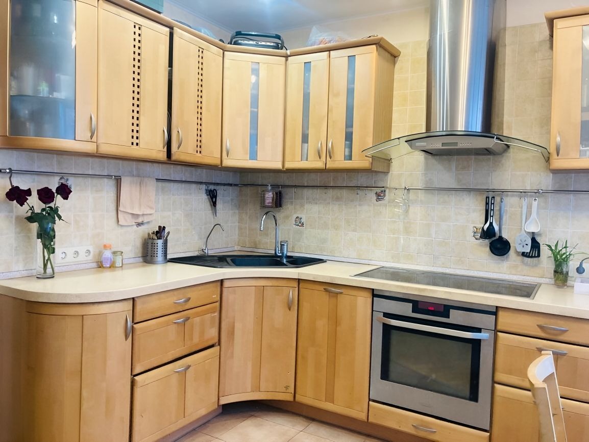 Качественный евро ремонт во всей квартире. На полу дубовый паркет. Ванна с джакузи, установлен бойлер. Установлено потолочное точечное освещение. В двух комнатах установлены кондиционеры. На кухне встроенная мебель, посудомоечная машинка. В спальне встроенный гардеробный шкаф. Две больших лоджии, одна утеплена и выполнен пол с подогревом, можно использовать как рабочий кабинет.